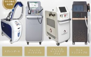 脱毛機はジェントルマックスプロやスプレンダーXといった熱破壊式のほか、蓄熱式の脱毛機も導入。